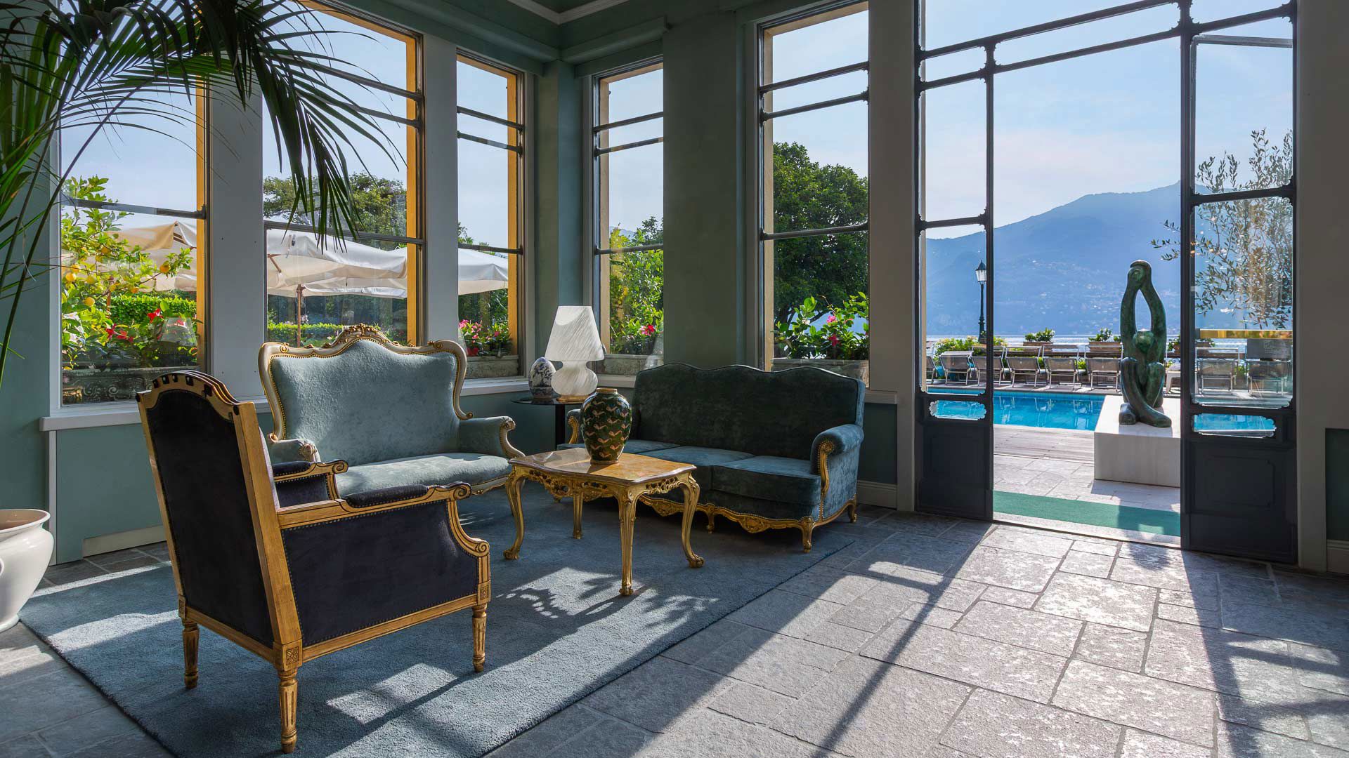 It overlooks the blue waters of Lake Como with: heated pool by the lake, bar, 2 restaurants, boutiques, private moorings for boats, water skiing and all other water sport equipments.